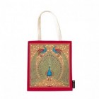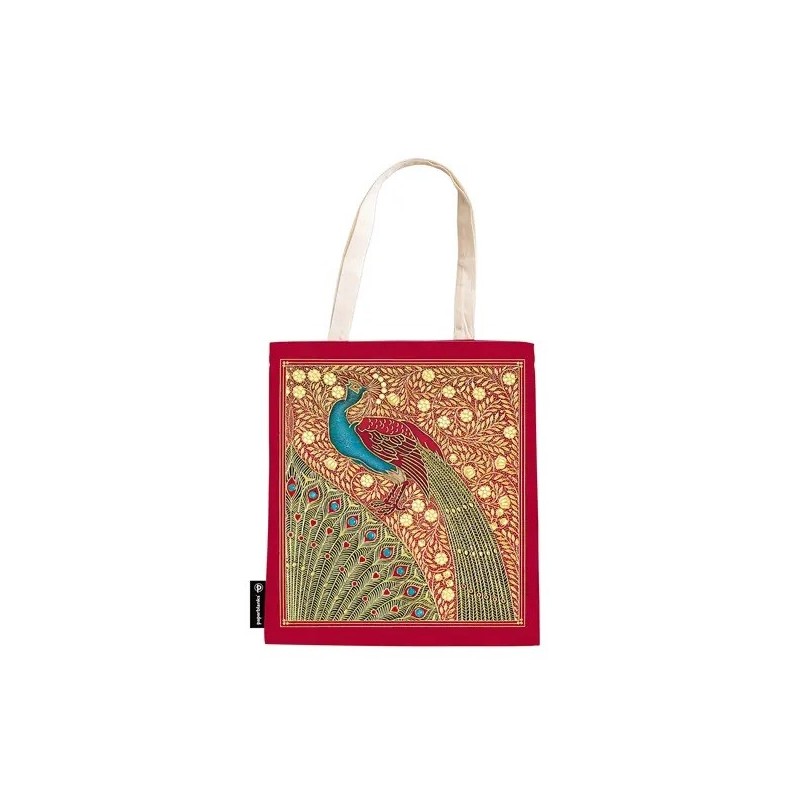 This glorious binding comes from the revered artisans at Sangorski & Sutcliffe, a world-renowned British bindery best known for the bejewelled cover of Omar Khayyam’s Rubaiyat (also known as the Great Omar), forever lost in the sinking of the Titanic. The beautiful binding reproduced here was crafted in 1910 to house a collection of works by celebrated Persian poet Hafiz, entitled Hafiz? of Shiraz: Selections from His Poems (translated from the Persian by Herman Bicknell). It was made of red levant morocco with leather joints and green levant morocco flyleaves, with three stunningly bejewelled peacocks with their feathers on full display as the focal point. The birds were inlaid in eight different colours and embellished with foliage and gold tooling, and the binding itself set with pearls and 33 opals that lend it an unparalleled opulence. Established in London in 1901, Sangorski & Sutcliffe quickly rose to become one of the 20th century’s most important bookbinding firms, famous for jewelled bindings like “Recessional”, Hafiz? of Shiraz, and Rubaiyat and for their use of real gold in the cover details.