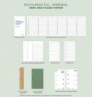 Φύλλο χαρτιού, εμπρόσθιο φύλλο, αχρονολόγητος ετήσιος σχεδιαστής, χαρτί με κουκκίδες, απλό χαρτί, χαρτί με γραμμές, λίστες εργασιών, επαφές, οικολογικός χάρακας / μαρκαδόρος σελίδων, φάκελος από χαρτόνι.