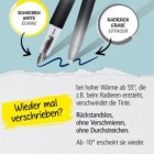 Σε θερμοκρασίες άνω των +55 βαθμών Κελσίου (π.χ., κατά το σβήσιμο), το μελάνι εξαφανίζεται και κάτω από τους -10 βαθμούς Κελσίου, επανεμφανίζεται.