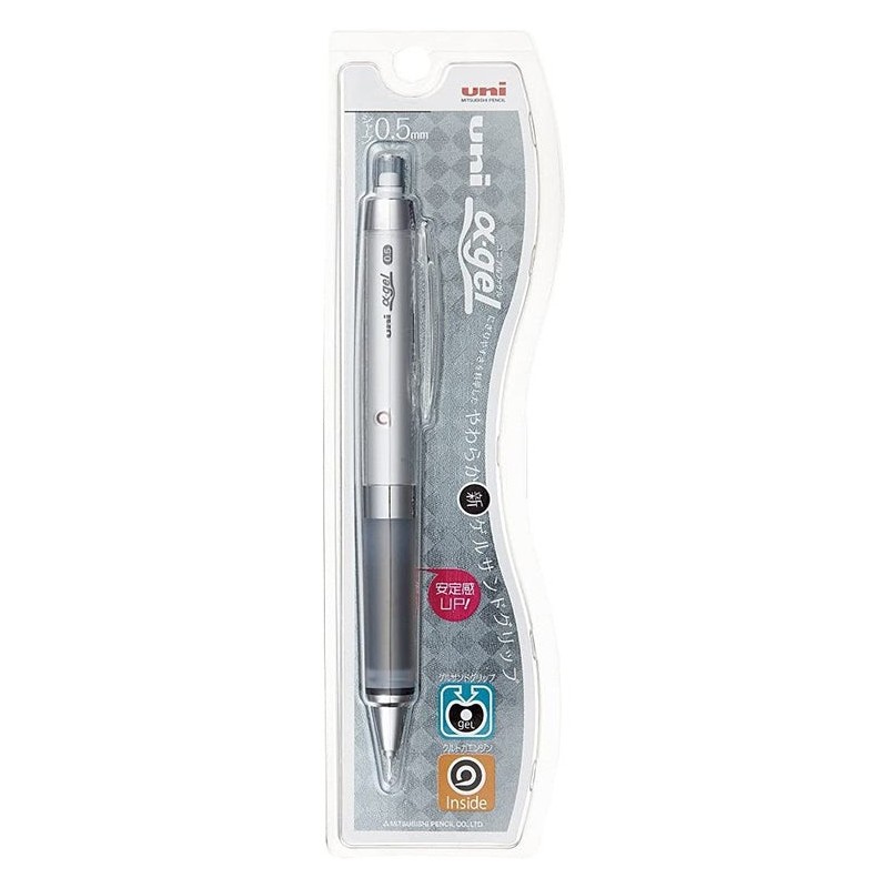 Η τριστρωματική δομή της νεοαναπτυγμένης «Gel Sand Grip» προσφέρει μαλακή, “chewy” αίσθηση και σταθερό κράτημα, καθιστώντας δυνατή την άνετη γραφή ακόμη και μετά από παρατεταμένη χρήση. Το αGEL απορροφά απαλά την πίεση των δαχτύλων, ενώ η τρίτη στρώση από σιλικονούχο καουτσούκ σταθεροποιεί σταθερά τη λαβή.