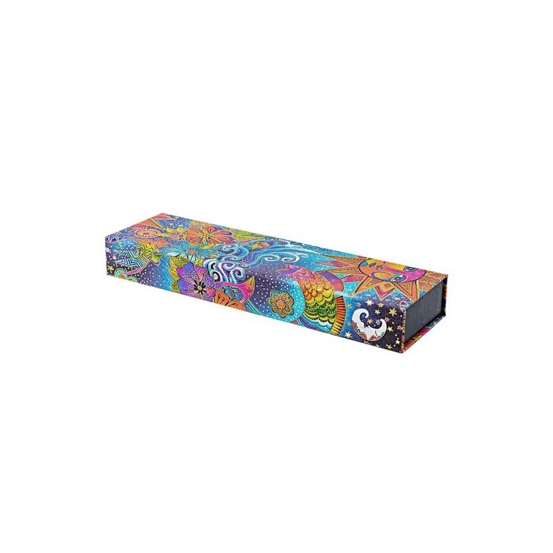Η τέχνη της Laurel Burch ζωντανεύει σε αυτό το πανέμορφο, λεπτομερώς διακοσμημένο σχέδιο. Το ουράνιο θέμα της έχει εξελιχθεί σε μια ζωηρή παλέτα χρωμάτων, στολισμένη με λαμπερές λεπτομέρειες σε ασημί και χρυσό. Ψαράκια σε ουράνιες αποχρώσεις και πολύχρωμα άνθη πλέουν ανάμεσα σε ήλιους, φεγγάρια και αστέρια, δημιουργώντας ένα μαγικό κομμάτι τέχνης γεμάτο φαντασία και χαρά.