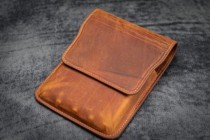 Galen Leather Flap Pen Case for Five Pens - Crazy Horse Brown