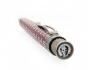 Harriet Tubman is one of America’s most iconic figures, inspiring generations. In the face of unrelenting danger, Harriet Tubman courageously risked her own life, traveling countless miles on the Underground Railroad to help other slaves find freedom and "never lost a passenger." This Tornado rollerball pays homage to Harriet Tubman. The design reproduces the pattern from a headscarf in one of her most well-known photos. The stainless barrel has a lightly textured base coat with pattern printed on top and is finished with antique silver trim and her portrait on the finial. Each pen is packaged in a commemorative tube. May all who write with this pen be moved by Tubman\'s daring courage and generosity.