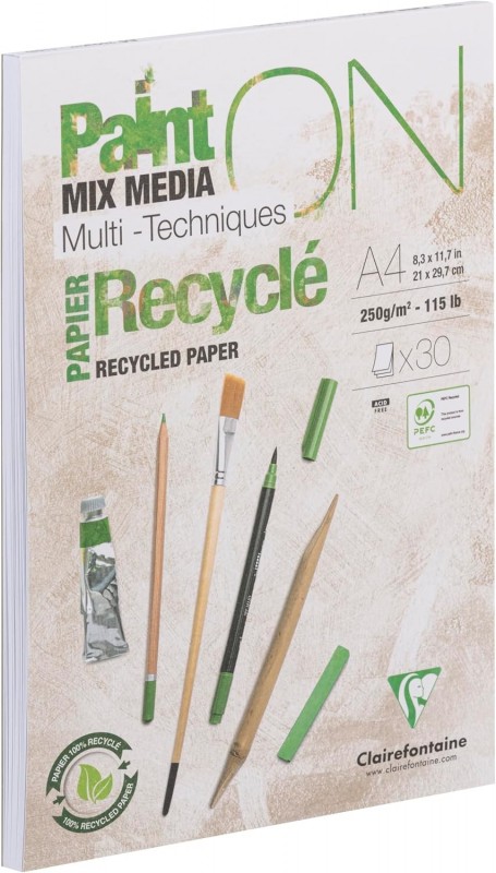 Clairefontaine Paint\'ON Drawing Pad Glued A4 Size The pad contains 30 sheets of recycled paper, white, 250 g. Perfect for dry and wet techniques. You will receive 1 item