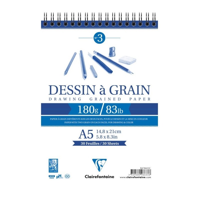 Clairefontaine A5 spiral Dessin a Grain 180gr 30sheets CF96633C