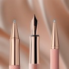 The twist ballpen present itself like pearlescent jewel: the precious resin barrel in soft rose is complemented by metal parts with an elegant, high-gloss 18-carat rose gold coating - the result is a colour combination that is as emotional as it is elegant, wonderfully reflecting the interplay of rose between romance and sophistication.