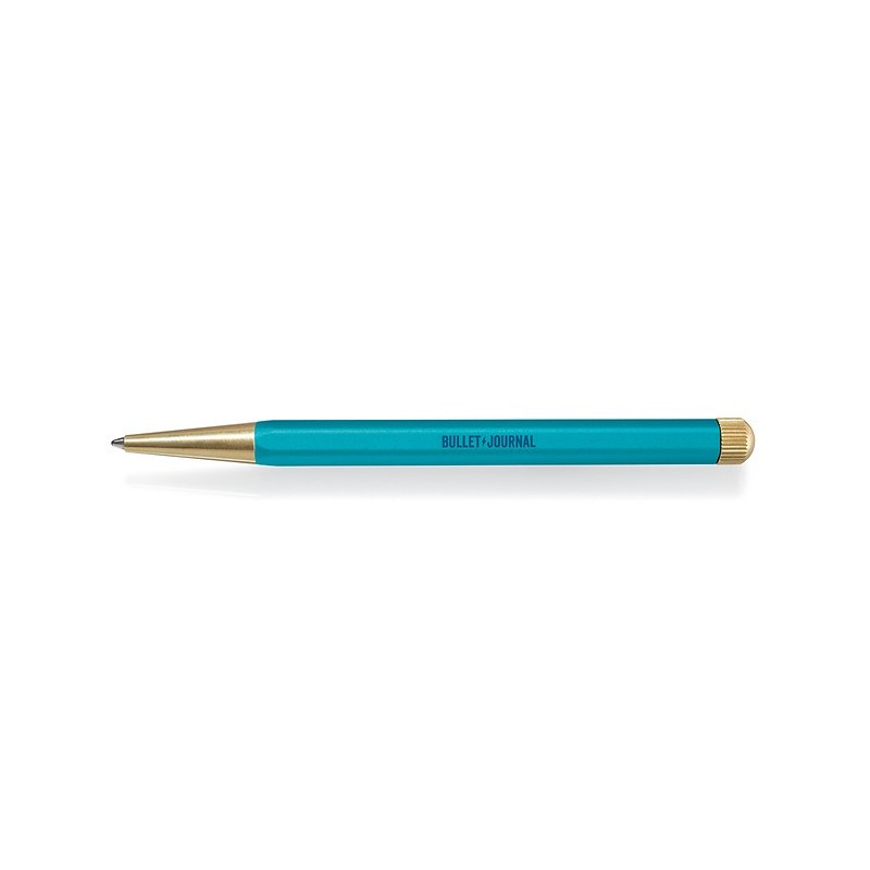 The long, striking tip and the rotary head are made of brass and give this writing instrument a special character. The black lacquered aluminum center piece has been sandblasted. This ensures a slightly roughened, matt surface with a pleasant grip. On the center piece, the logo stands out discreetly from the background in black glossy lacquer. The lightning bolt engraved in the turret is the identifying mark of the international Bullet Journal® community.• Length: 13 cm
