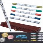 This set includes five smooth metallic shades that work well on light and dark paper alike - gold, silver and metallic green, blue and red. The set comes in a bamboo case, making it easy to keep them safe or give them as a gift.