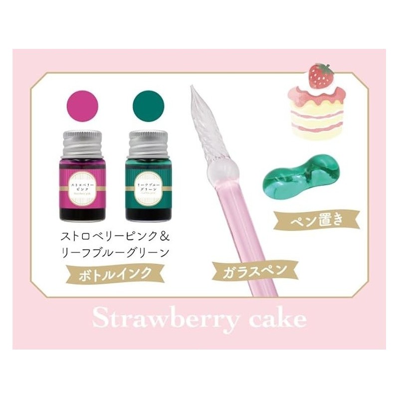 Glass Pen Afternoon Tea. Strawberry Cake, with Pen Tray and 2 bottled inks