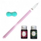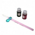 Contents: Glass pen, pen tray, two bottles of glitter ink (7ml) (strawberry pink and leaf blue-green)