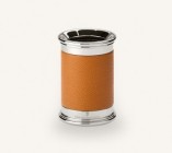 Highly polished metal parts and grained calfskin leather sheaths set these desk accessories apart.
