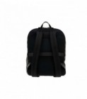 Backpack in nylon and smooth black calfskin. Dimensions 41cm x 31cm x 17.5cm. This backpack is a comfortable companion for young urban explorers who live their daily lives intensely, thanks to a compartment for laptops up to 15" and double pockets. Total capacity 22.5L.