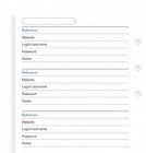 Never forget passwords again with these handy Password Paper Refills for your Filofax Personal size Organiser or Clipbook. Complete with reference, website, login, password and notes fields you can keep your login information all in one place. 20 sheets password paper - 70gsm. Height: 171mm / Width: 95mm. Compatible with: Personal Organisers, Personal Clipbook