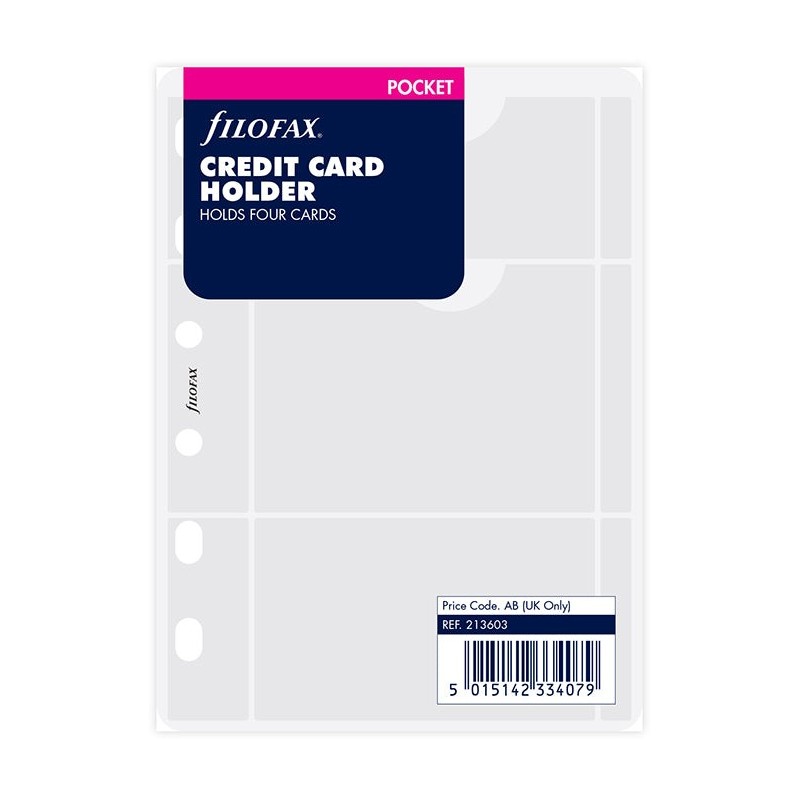Transform your Filofax pocket organiser into a useful purse or wallet with this handy transparent credit card holder. Holds four cards.