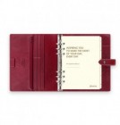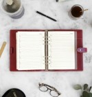 paper flyleaf, front sheet, undated year planner, dividers blank, dotted paper, plain paper, ruled paper, to do lists, contacts, blue ruled paper, green ruled paper, pink ruled paper, brown ruler / page marker, top opening envelope.