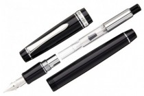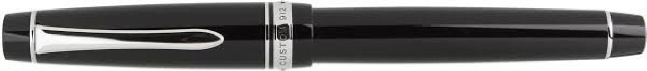 In addition to the simple vest-shaped body form, it has a solid design with silver accents such as clips and gold rings. The nib is rhodium-finished, and there are 15 different character widths available.