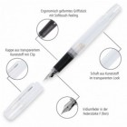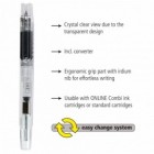 The fountain pen Bachelor is made of robust, transparent ABS, with iridium nib Fine made in Germany, for long lasting writing pleasure. ONLINE provides a 5-year warranty on the iridium nib. Includes a converter. For ONLINE combi ink cartridges and standard ink cartridges.