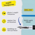 The erasable ink of the ONLINE magiXX fountain pen can be completely erased without smudging. Writing mistakes can be easily corrected and unsightly worksheets with eraser marks, Tipp-Ex or cross-outs are a thing of the past.