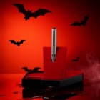 A pen with a bite. Dracula is Nahvalur’s most theatrical creation to date, designed to make an impression from the very first moment. Finished in sleek silver titanium, the pen is accented with a subtle vampiric emblem and a distinctive blood-drop detail near the grip, offering a modern and refined interpretation of classic gothic style. Its striking presence continues through the unboxing experience, presented in a coffin-shaped case that instantly sets the tone.