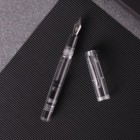 Equipped with an internal piston-filling mechanism, the pen draws deeply from bottled ink, while its stainless steel nib delivers a consistent, reliable flow capable of keeping pace with an endless current of ideas. The transparent demonstrator design offers a captivating view of the mechanism in action, revealing the graceful movement of the piston and the swirling ink within the crystal-clear barrel.