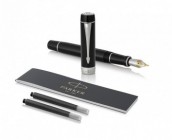 Parker Duofold Centennial Fountain Pen, Classic Black with Palladium Trim, Solid Gold Nib, Black Ink and Converter (1931365)