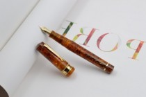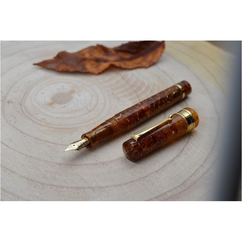 Santini Italia Libra Ambra GP 18k Superflexy Fine nib piston filler pen with ebonite feeder