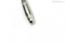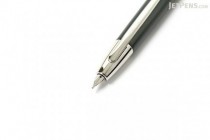 The nib of the Pilot Capless Decimo fountain pen is 18 kt Rhodium plated gold and the barrel has a metallic lacquer layer combined with the Capless elements in silver color.