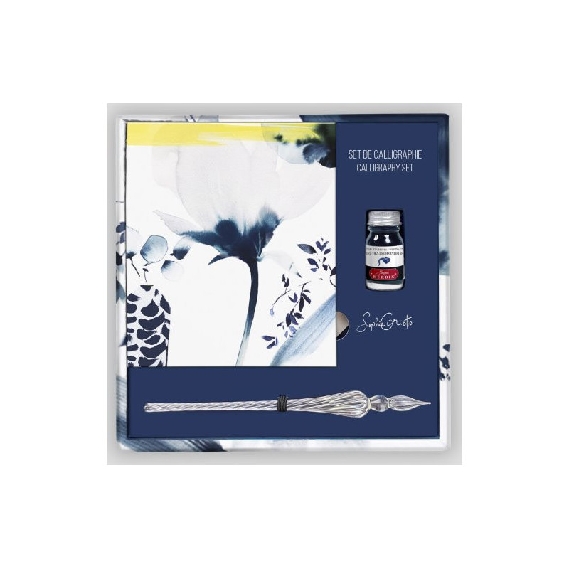 INKEBANA by Clairefontaine; Calligraphy Set: with mixed paper pad, Jacques Herbin glass pen and \'bleu des depths\' bottled ink