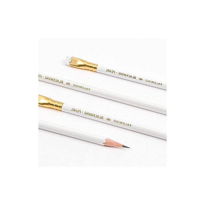 The Blackwing Pearl features a pearl white finish, gold imprint, white eraser, and a balanced and smooth graphite core that is softer than the graphite found in the Blackwing 602, but firmer than the graphite found in the Blackwing. Every Blackwing Pearl pencil features the iconic square Blackwing ferrule. Blackwing Pearl pencils come in packs of 12.