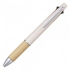 This is an understated and elegantly designed multi pen with an ergonomic grip. Pen is smooth writing featuring a lovely combination of bamboo wood, metal, and soft matte colored gray blue body. The weight of this pen is well balanced and comfortable for longer writing periods. There are 4 ballpoint inks with 0.5mm tips and also a 0.5mm mechanical pencil. A great pen that combines all needed functions into one streamlined pen body.