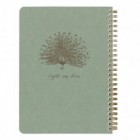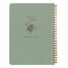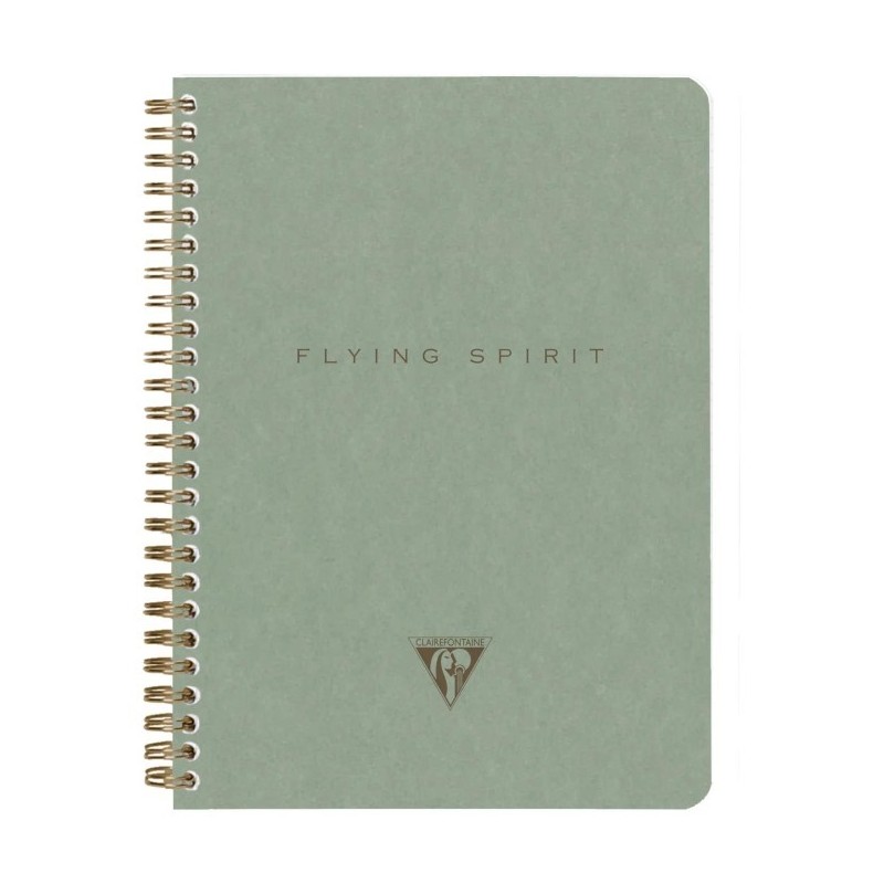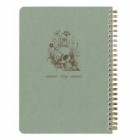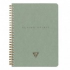 Flying Spirit Green notebook with spiral binding, dimensions 14.8 x 21 cm, featuring 120 detachable lined pages and assorted designs on the back cover. Ivory 90g paper.