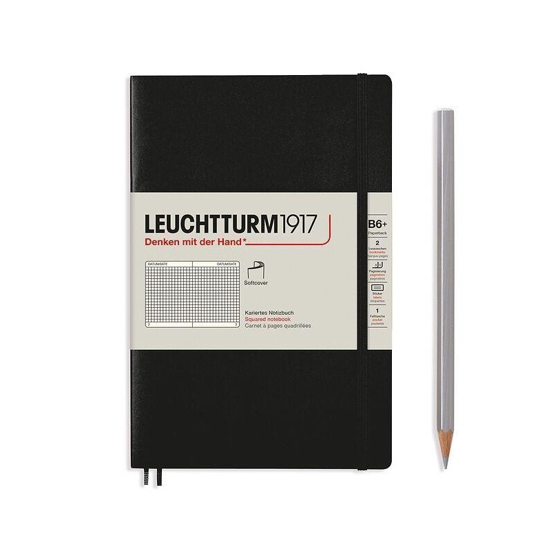 Leuchtturm 1917 B6 plus Paperback Black Squared, Soft Cover