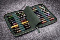 Galen Leather Zippered 20 Slots Pen Case - Crazy Horse Forest Green