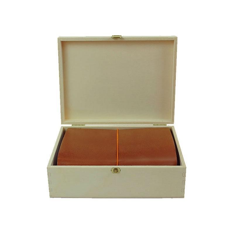 It includes a grand voyageur pocket (15 x 10cm) with four refill notebooks, a card holder and a ribbon kit , which we pack with care in a beautiful wooden box (17x13x6 cm) from Austria.