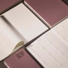 The interior features 100 g/m² high-quality paper, suitable for fountain pens and resistant to ink bleed-through. The lay-flat binding allows the planner to open completely flat for a comfortable writing experience.
